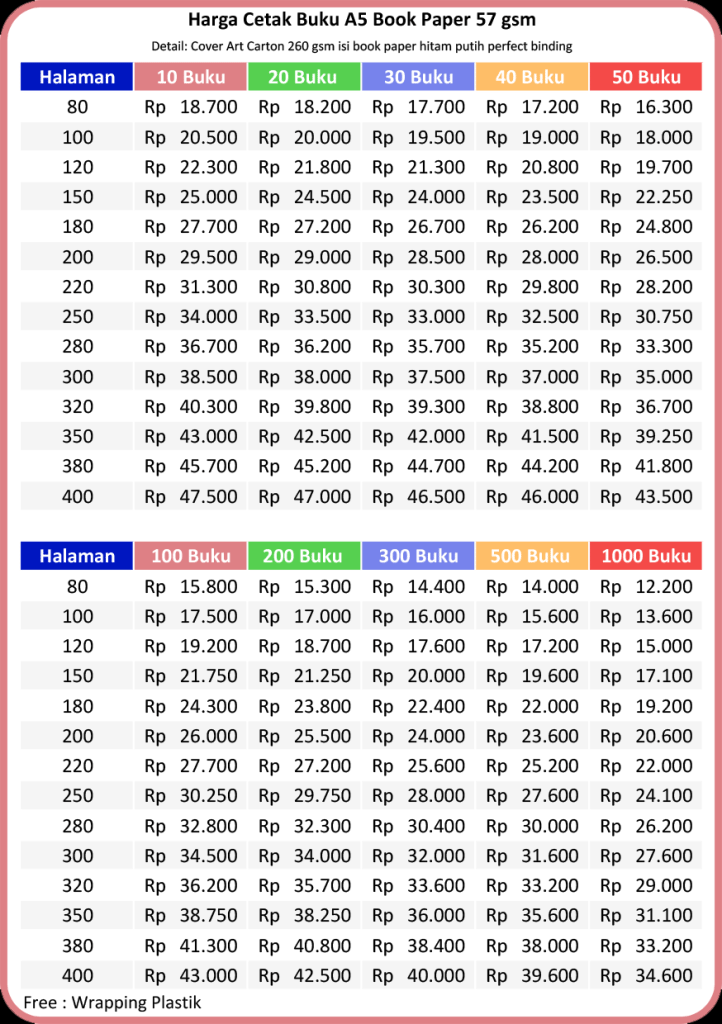 Harga Jilid Buku (Sudah Termasuk Cover)