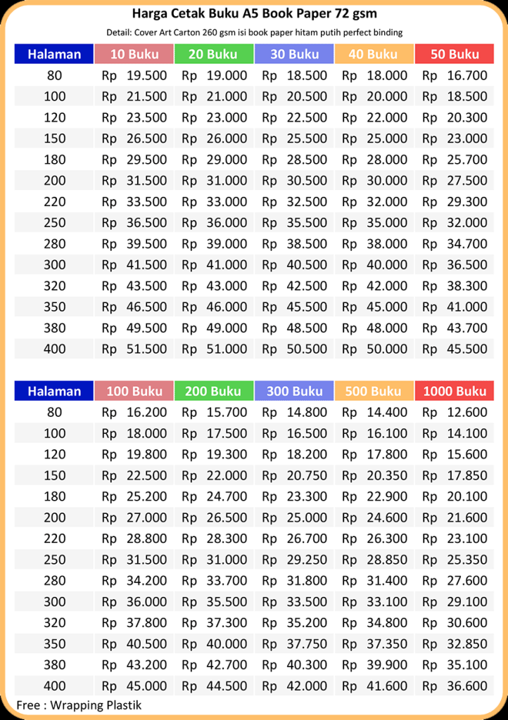 Harga Jilid Buku (Sudah Termasuk Cover)